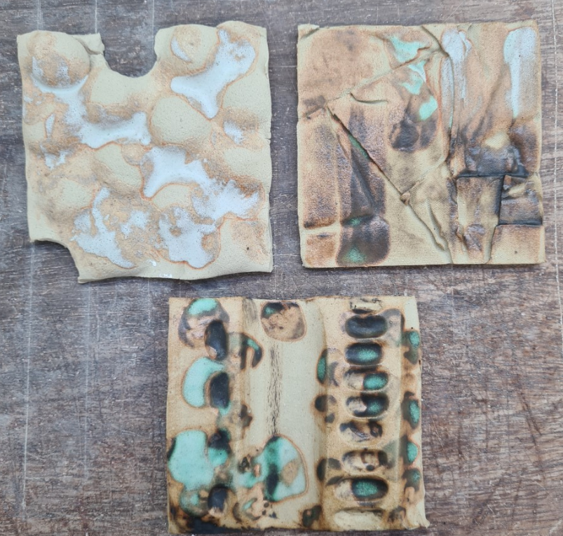 The results were really beneficial and it was interesting to see the different outcomes depending on the different firings. I used these test tiles to decide how to glaze my Stand & Deliver pieces as this was my only experience of glazing.