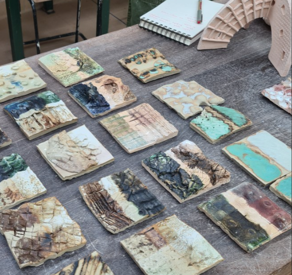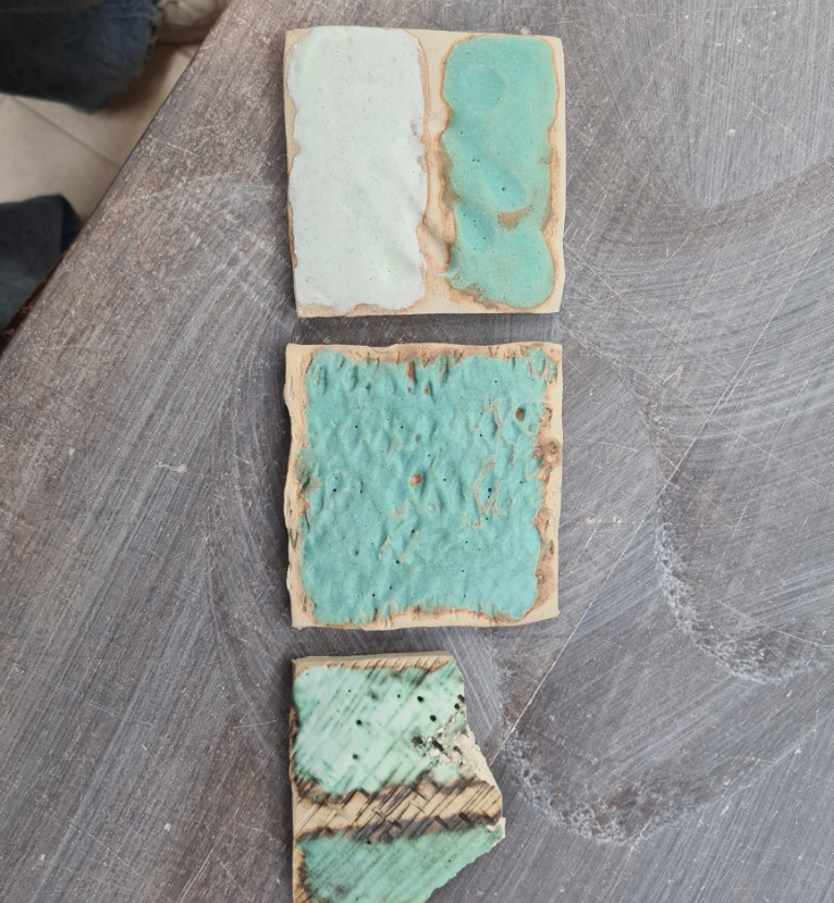 We began applying a variety of oxide combinations to our tiles we made in the first week of university.