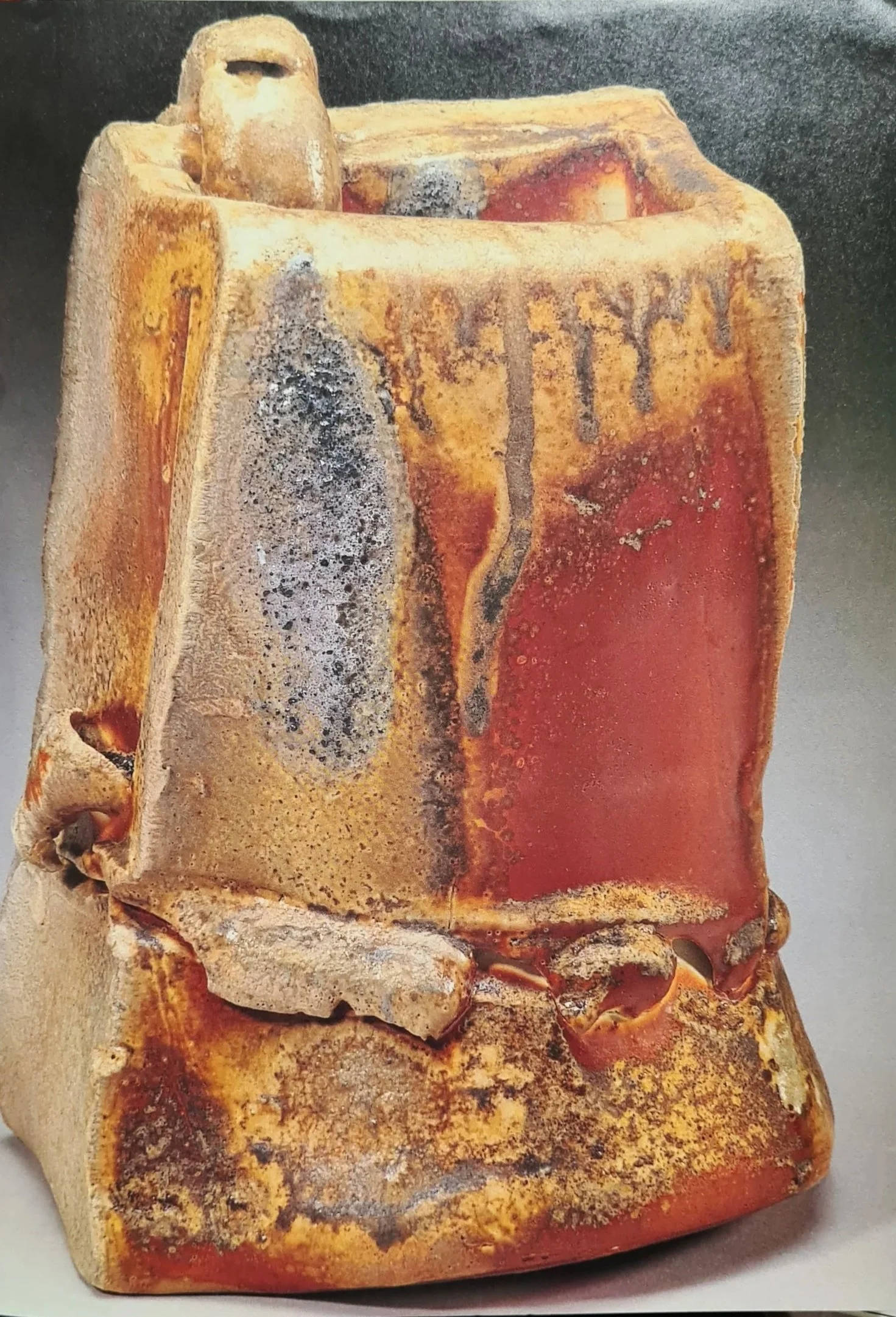 ‘Flower Vase’ - Red pine ash dripping. High-fired stoneware reduction. Coil thrown vase. Colour and pattern occur through ‘bidoro flow’ (Natural ash deposit) Fired at 1300’c. Pg 172