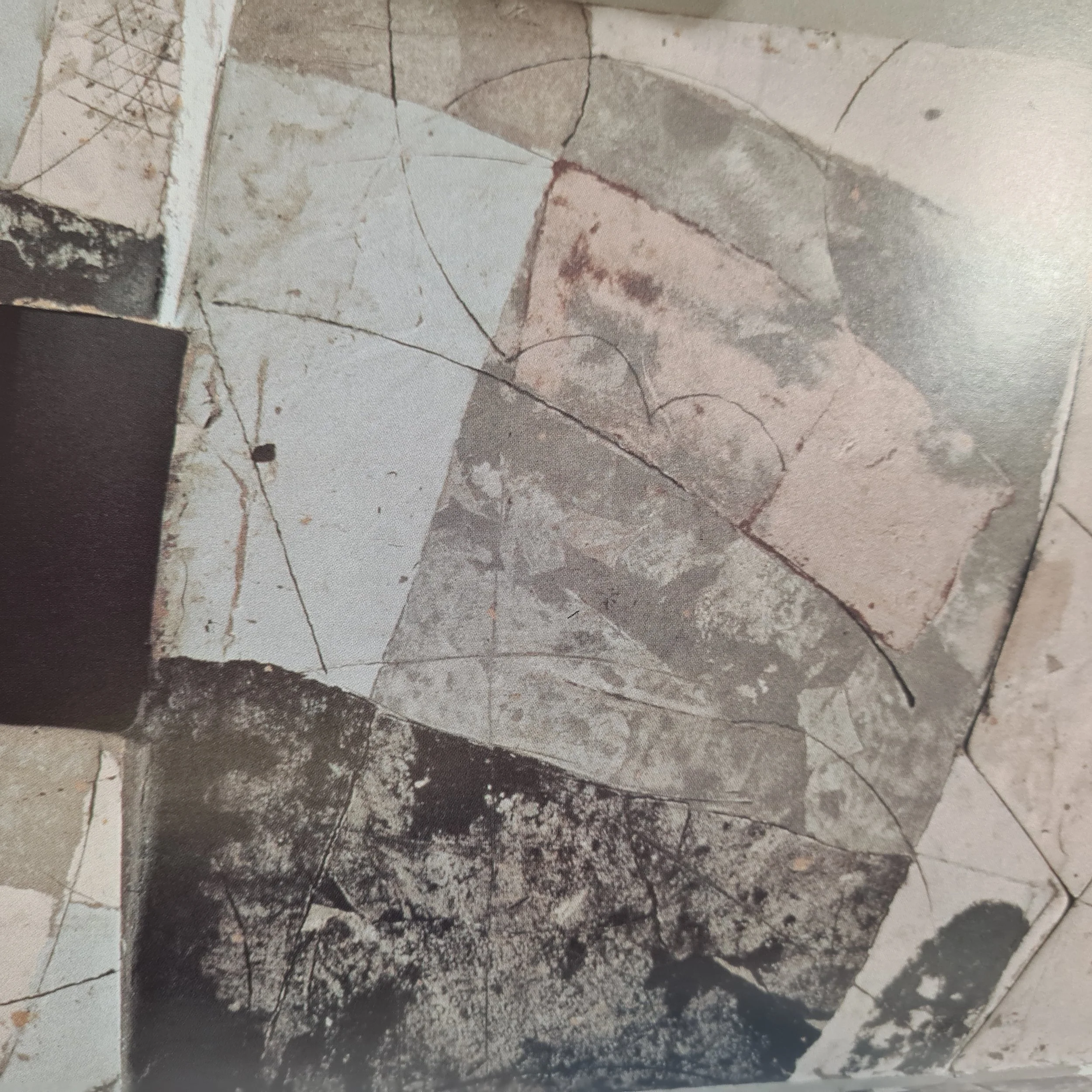 John Chalke- ‘Thin cup and Red Sky’ - Found shards embedded in stoneware slab, low-fired, oxidation. Upper red glazed with lead/chrome glaze. Below was a silicone/carbide mixture with added sand, frit, copper and flour. Pg 185