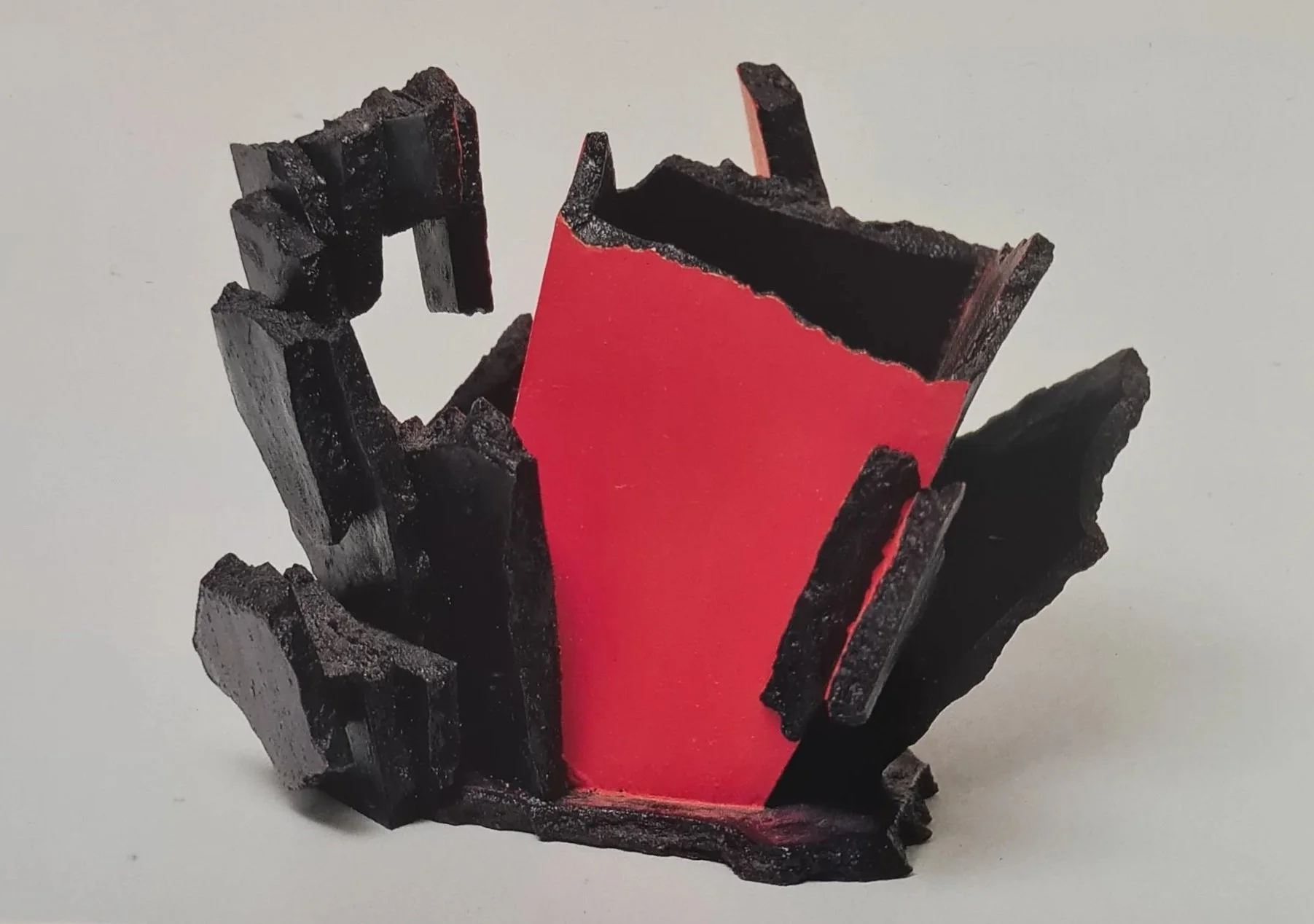 ‘Vessel’ Ewen Henderson to the left- Laminated stoneware and bone-China mix- 1986