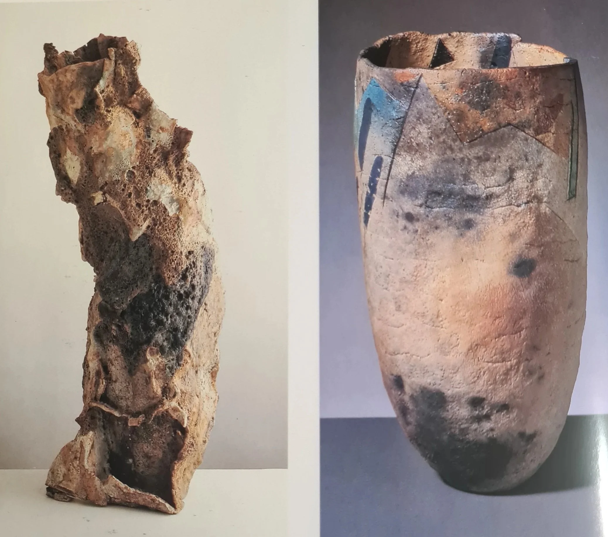 ‘Wild pot’ Peder Rasmussen to the right - Raku-fired earthenware 1985